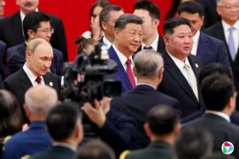 在星期三(3日)举行的纪念大会上,中国国家主席习近平、俄罗斯总统普京和朝鲜最高领导人金正恩,与20多位国家元首和政府首脑一起登上天安门城楼观看阅兵式,中俄朝领导人历史性同框画面被拍下。