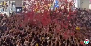 事件发生在星期五(10月3日)晚。网传视频显示,一商场内从上空撒落大量“红包”,现场聚集等待的人群迅速上前哄抢,场面一度失控。