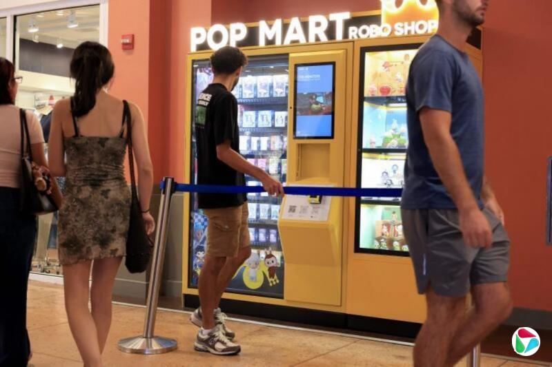 9月9日,在美国佛罗里达州迈阿密,人们在一架泡泡玛特贩卖机前选购泡泡玛特玩具,其中包括Labubu。(法新社)