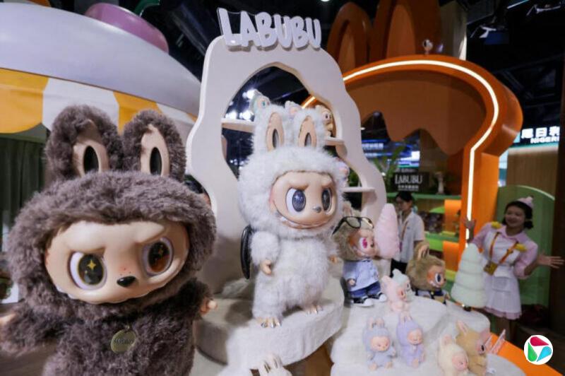 9月10日,在北京举行的中国国际服务贸易交易会上,Labubu玩偶在泡泡玛特展位上展出。(路透社)