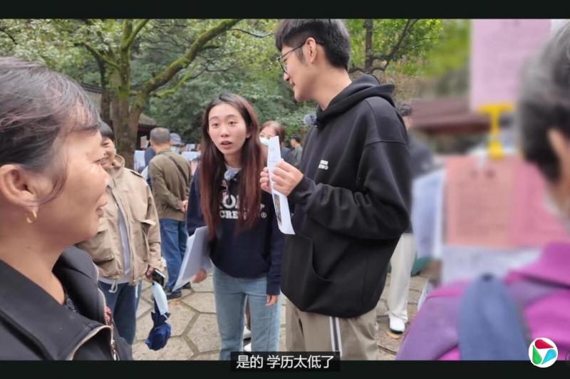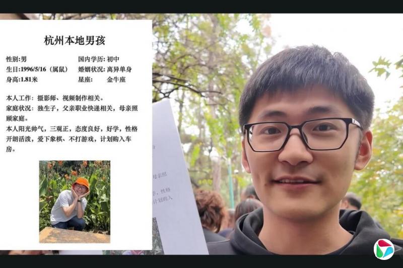 在影视飓风星期三(11月12日)发布的粉丝问答视频中,有网民向潘天鸿提出“去相亲角推销自己”的要求。他于是带了一份写着“杭州本地男孩、国内学历初中、离异单身、父亲职业快递相关”等信息的简历,现身杭州相亲角,接连遭现场阿姨吐槽“学历太低了”“这么年轻就离异了”。