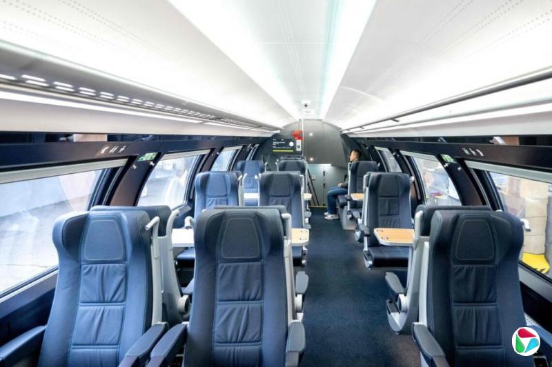 列车由六节车厢组成,提供536个可预定座位,所有车厢均配备舒适的真皮座椅、电源插座以及免费Wi-Fi。与现有列车相比,新列车总长增加了8米,能耗降低10%。