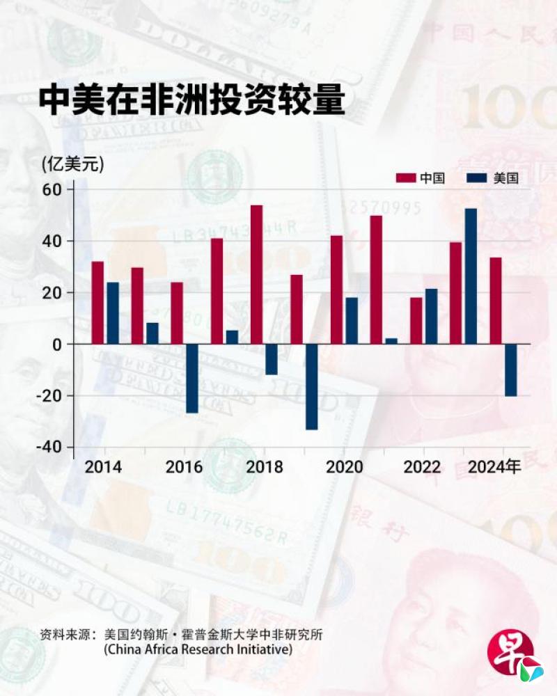 相较中国在海外矿业的扩张,美国的相对退缩形成了鲜明对比。数据显示,中国在非洲直接投资持续增长,2024年达34亿美元;而美国企业同年在非洲净撤资约20亿美元,美非贸易总额占非洲对外贸易的份额已不足5%。在中美博弈背景下,中国凭借长期勘探积累、产业需求和市场化运营,正逐步提升在关键矿产定价与计价方面的影响力。