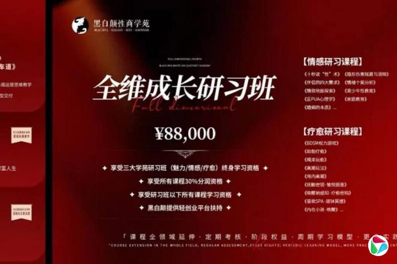 课程主要分为线上线下两类。线上课从9.9元、99元、999元到上千元不等,另有高阶、个性化导师定制课程,售价高至8万8000万元。以999元的全维提升营为例,课程包含多种情感问题和情趣玩法,官方商城页面显示已有五六千人学过。