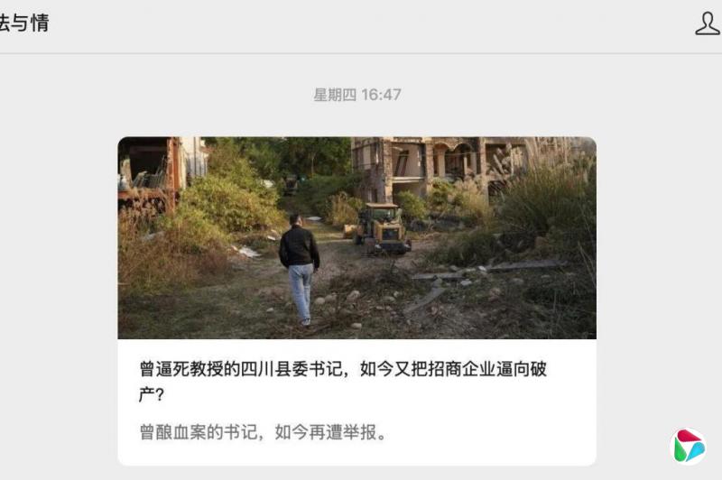 刘虎和巫英蛟上星期四(1月29日)通过微信公众号“法与情”,发布题为《曾逼死教授的四川县委书记,如今又把招商企业逼向破产?》的署名文章,矛头直指中共成都市蒲江县委书记蒲发友。