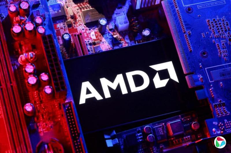 AMD也向中国客户通报供应紧张,部分产品的交付时间已延长至8到10周。图为AMD标志和电脑主机板的合成图,摄于2025年8月。(路透社档案照)