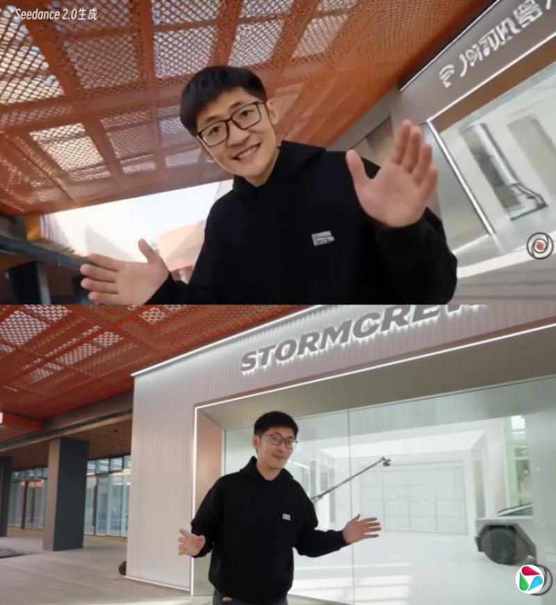 此外,影视飓风团队仅将办公楼的正面照片上传到Seedance 2.0,但AI运镜时带出办公楼的另一面,竟和现实中的布局几乎一模一样。
