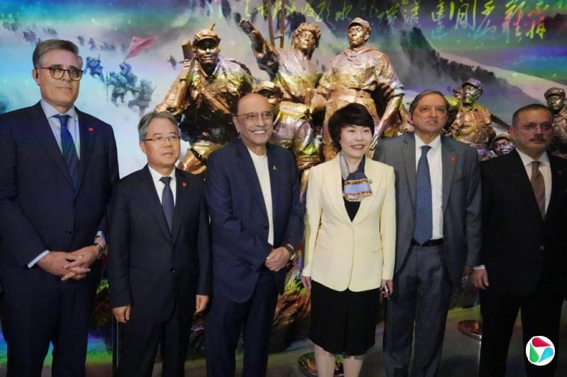 巴基斯坦总统扎尔达里(左三)在韶山毛泽东纪念馆合影留念。(中新社)