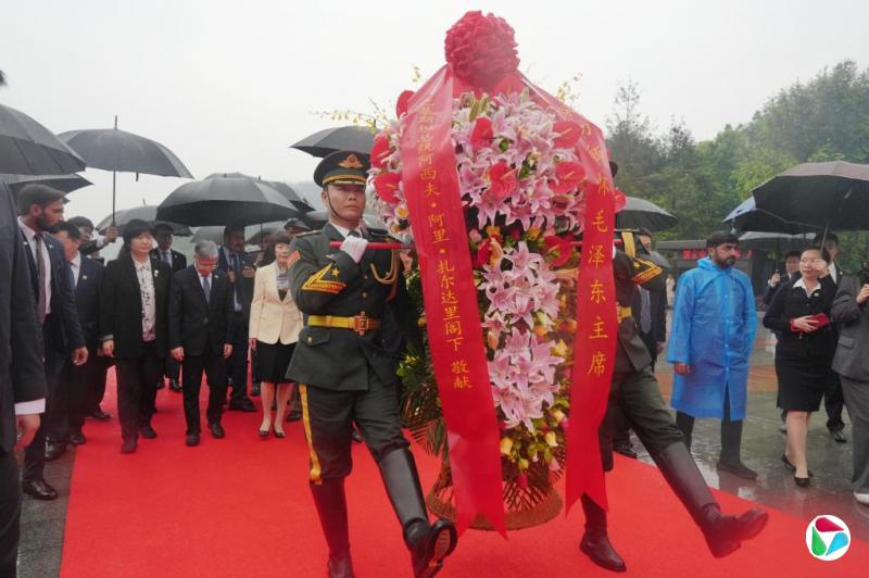 据中新社报道,扎尔达里星期一(4月27日)到访湖南韶山,参观韶山毛泽东纪念馆,并向毛泽东铜像敬献花篮。