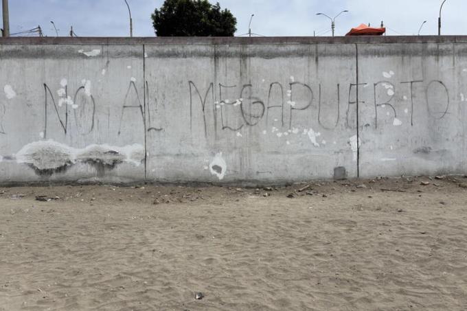 钱凯港附近沙滩上的一道水泥墙被人涂鸦,以西班牙语写道“向巨型港口说不”,宣泄着对这个项目的不悦。