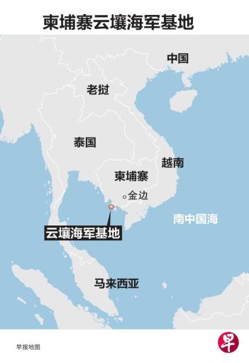 云壤海军基地面向泰国湾,靠近南中国海与马六甲海峡。中柬两国2019年签署合作协议,在云壤海军基地建设综合保障设施与训练中心。