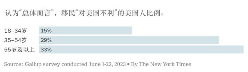低出生率的富裕国家面临的挑战是如何让新移民从经济和社会层面融入。这需要公众支持在住房、教育和移民需要的其他方面进行投资。在美国这个移民国家,尽管南部边境出现混乱,但对移民的支持仍然相当强烈。但在美国老年人中,这种支持相对较弱,如下图所示: