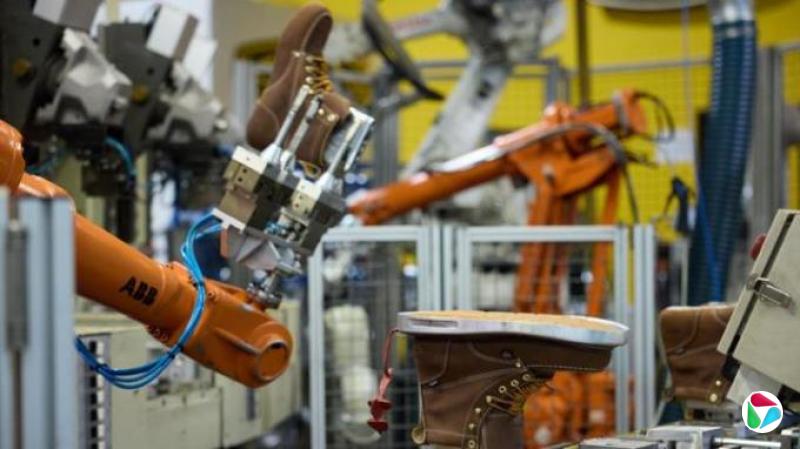 这座工厂仅有24名员工,却高度依赖自动化设备。精密机器人可完成融合鞋底和修剪材料。这反映出当今制造业的重大转型。