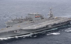 “杰拉尔德·R·福特”号航母是美国新一代航母“福特”级的首舰。作为新一代航母,“福特”级采用了大量新技术和新装备,包括电磁弹射器、电磁拦阻器、双波段雷达等,可搭载70到80架飞机,包括最新型的F-35C隐身战斗机和无人加油机,整体作战效能比“尼米兹”级进一步提升。“福特”号2005年开始建造,已于2017年7月服役,由于技术原因,“福特”号在今年五月才开始首次全面部署,如果参战,将是该舰首次实战。