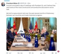 中美元首在旧金山费罗丽庄园的会晤结束,美国总统拜登与中国国家主席习近平微笑道别,互道“明天见”。