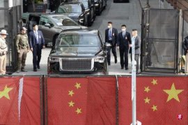 习近平上车离开庄园前,两人在别墅外微笑握手道别。拜登握着习近平的手说:“谢谢。”