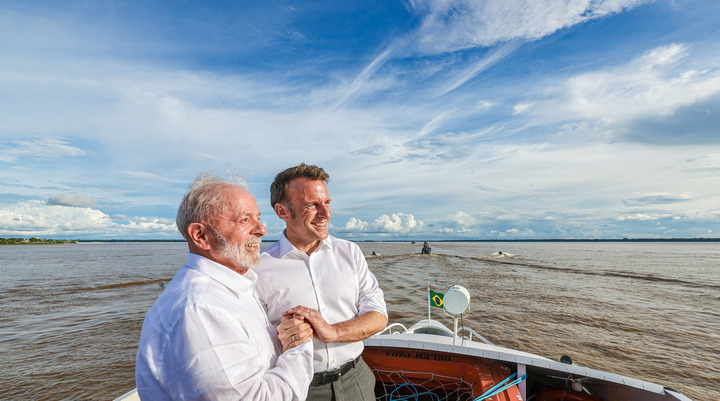 据报道,在对巴西为期三天的访问中,马克龙26日到了巴西北部城市贝伦,在亚马孙森林中与巴西总统卢拉进行会晤。两人的笑容和热情的肢体动作显示出双方的亲密关系。