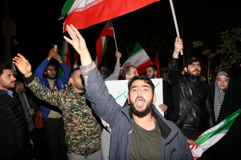 4月14日,伊朗民众在位于德黑兰的英国大使馆外举行集会。(路透社)