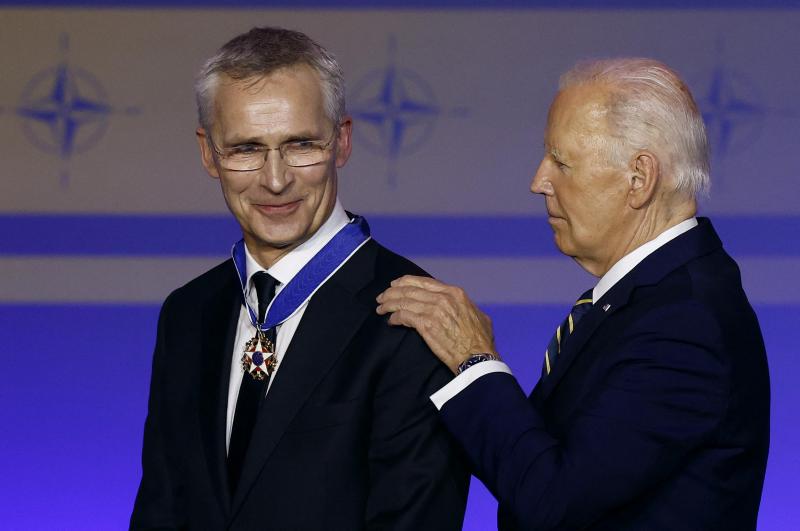 拜登7月9日向即将卸下北约秘书长职务的斯托尔滕贝格颁发美国总统自由勋章。