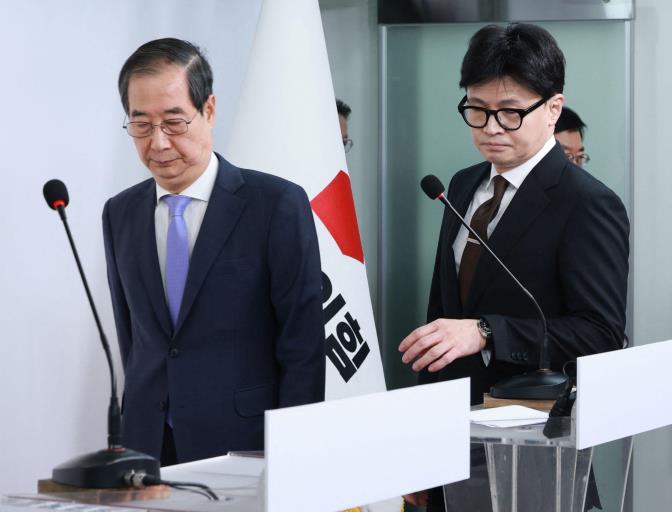 2023年12月,尹锡悦任命同样曾为检查官的亲信韩东勋为执政党紧急对策委员长,意图稳住政权。然而,韩东勋上任后却主张金建希应为收受名牌包向国民道歉,并支持对她展开调查。两人因此爆发激烈矛盾,执政党也分裂成“亲尹派”与“亲韩派”。韩东勋在去年4月的国会选举中惨败,但三个月后却成功当选国民力量党党魁,逐渐形成独立政治势力,削弱尹锡悦党内影响力。