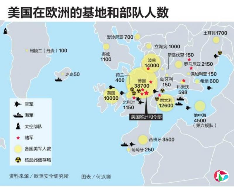 美国是主导北约的军事力量,承担约七成的军力和指挥权。美国在欧洲部署约10万美军,并为北约提供关键能力如飞机空中加油。美国还提供大量核武器以及重要的情报、后勤和侦察工具。北约指挥官也一直由美国人担任。如果美国抽身,欧洲要填补美国留下的空白、并对俄罗斯起到威慑将相当困难。
