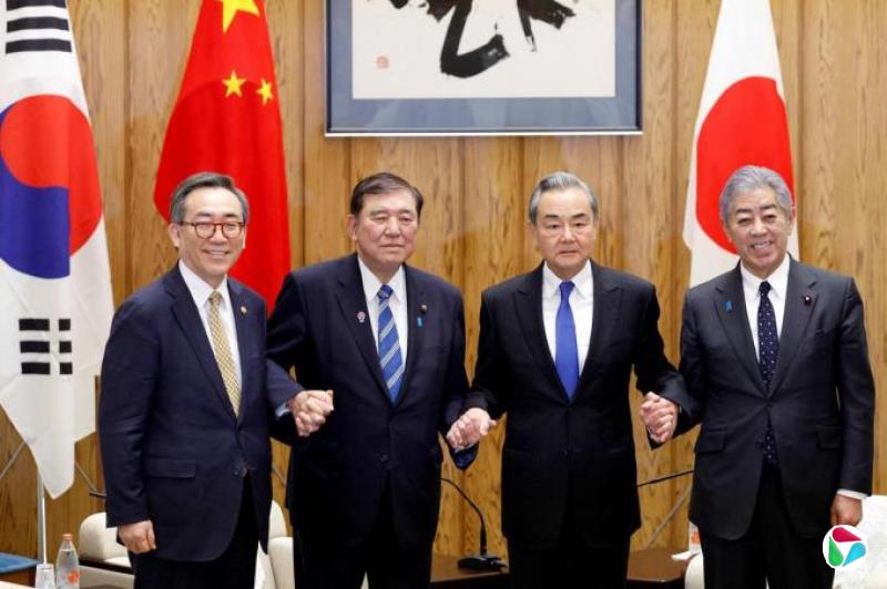 中国外长王毅说,在国际格局变乱交织、世界经济复苏乏力背景下,中日韩有必要、也有责任进一步加强沟通,增进互信,深化合作,为地区和平发展提供更多稳定因素。他说,事实证明,中日韩合作越实,三国抵御风险的能力就越强,赋能发展的基础就越牢。