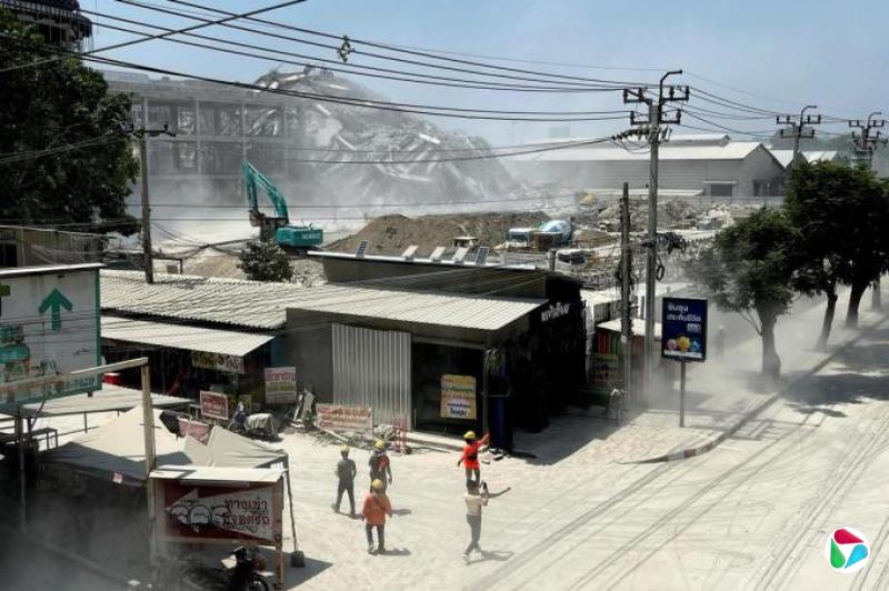 缅甸中部星期五发生强烈地震后,也波及泰国首都曼谷,建筑物不仅倒塌,人们也纷纷从建筑物中撤离。(路透社)