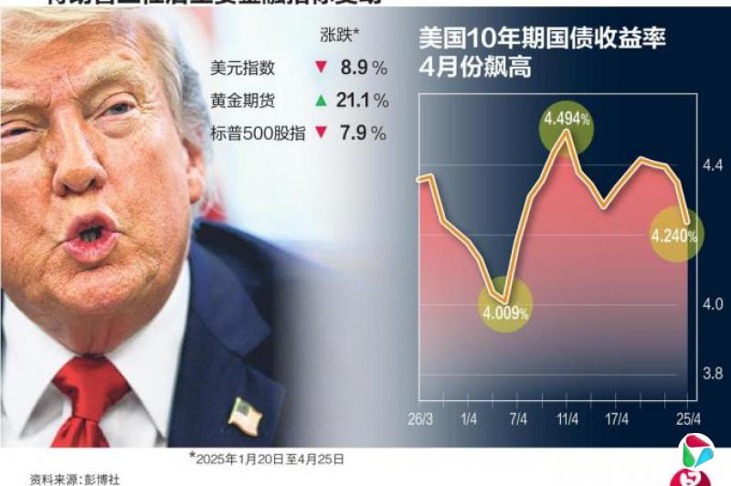 单是民意支持度或还无法动摇特朗普,但当民意被投射到金融市场时,商人出身的特朗普还是被迫退缩了。4月8日,美国长期国债遭投资者抛售,特朗普隔天即宣布暂缓实行高额对等关税90天,期间所有国家都仅征收10%关税。