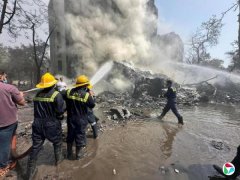 印度CNN新闻频道报道,客机坠毁在国立B.J.医学院宿舍楼顶层的食堂,造成多名医学生死伤。现场拍摄的视频显示飞机残骸落在楼顶。
