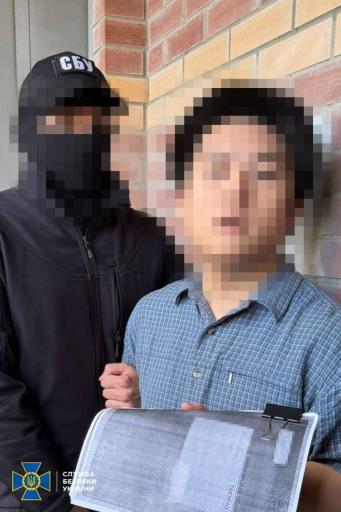 另一个中国公民(右)在基辅被乌克兰安全局人员拘捕。(法新社)