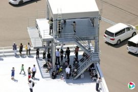 目前,日本正逢暑假,各地海岸已开放给人们游泳。著名的神奈川湘南地区的海滩,有多达160人挤到海边的避难塔里。日本目前面对热浪冲击,在近40度的烈阳气温中避难,苦不堪言。