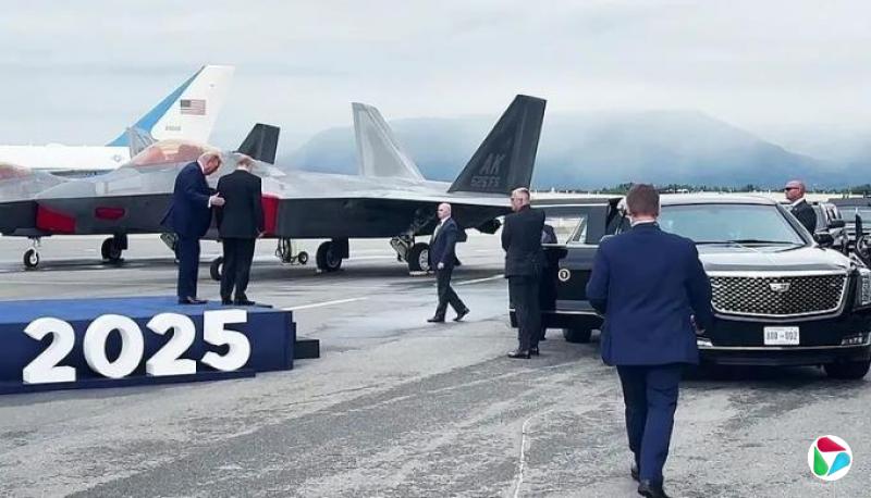 当地时间8月15日,美国总统特朗普和俄罗斯总统普京在美国阿拉斯加州安克雷奇市埃尔门多夫-理查森联合军事基地的机场会面。图源:视觉中国