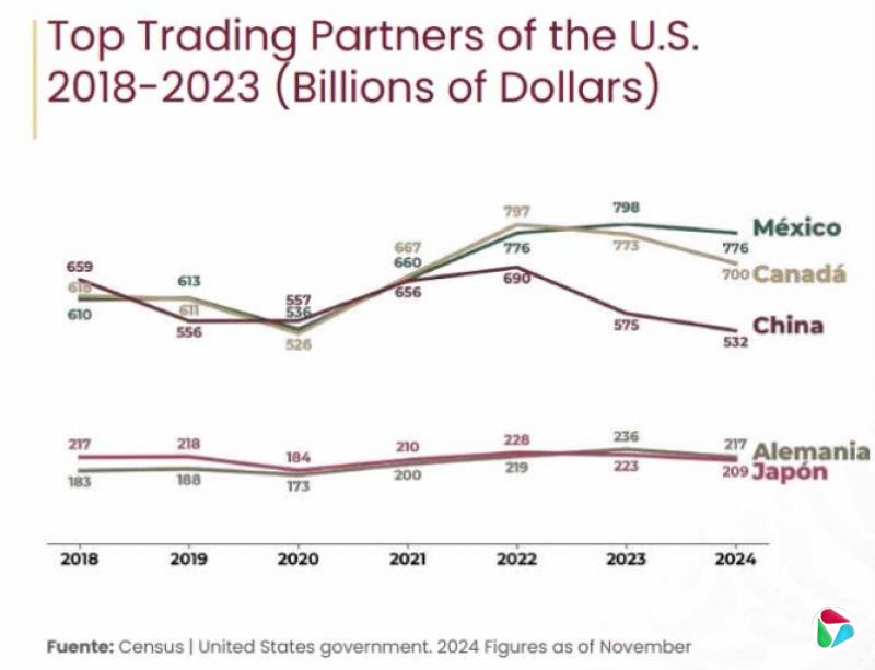 美国的主要贸易伙伴2018-2024(单位:十亿美元)《墨西哥计划》