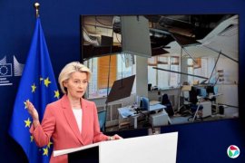 冯德莱恩在布鲁塞尔告诉记者,两枚导弹在20秒内击中距离欧盟代表团办公室50米的地方。她说,欧盟国家将很快出台针对俄罗斯的第19份制裁方案,并正在推进如何利用冻结的俄罗斯资产援助乌克兰的计划。