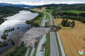 照片显示,这次的地陷横跨数十米,影响了E6公路的两个车道,以及在奥斯陆以北约500公里的莱旺厄尔镇(Levanger)道路旁的轨道。