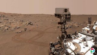 美国火星探测器“毅力”号去年在火星耶泽罗陨石坑附近采集到的一块岩石样本中存在“潜在生物特征”。