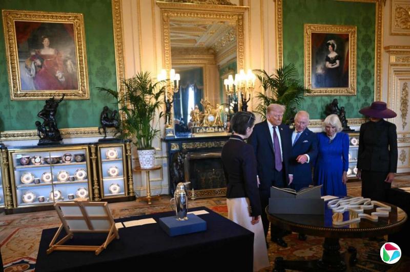周三,特朗普夫妇前往温莎城堡拜会查尔斯国王,王室铺开红地毯以盛大的仪式欢迎他们,包括鸣放礼炮、检阅军队,查尔斯国王和卡米拉王后还陪同特朗普夫妇乘坐马车,在温莎城堡内巡游。