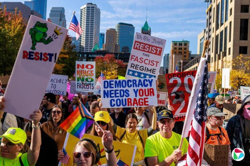 星期六(10月18日)的示威活动已是特朗普任内第二次爆发“不要国王”全美集会,比起今年6月14日特朗普生日当天的首次“不要国王”集会规模和范围更大,不仅席卷纽约、洛杉矶等大都市,也蔓延到腹地的小城市,包括特朗普官邸所在的佛罗里达州。