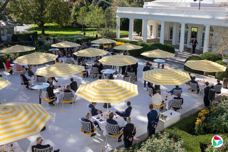 特朗普10月21日在白宫玫瑰园为共和党参议员举行午餐会。(法新社)