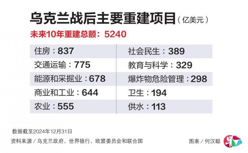 报告估计,截至2024年12月31日,乌克兰未来10年的重建和恢复需要多达5240亿美元,这约是乌克兰2024年国内生产总值(GDP)的2.8倍。住房的重建和恢复最迫切。这份报告还不包括2025年的破坏。