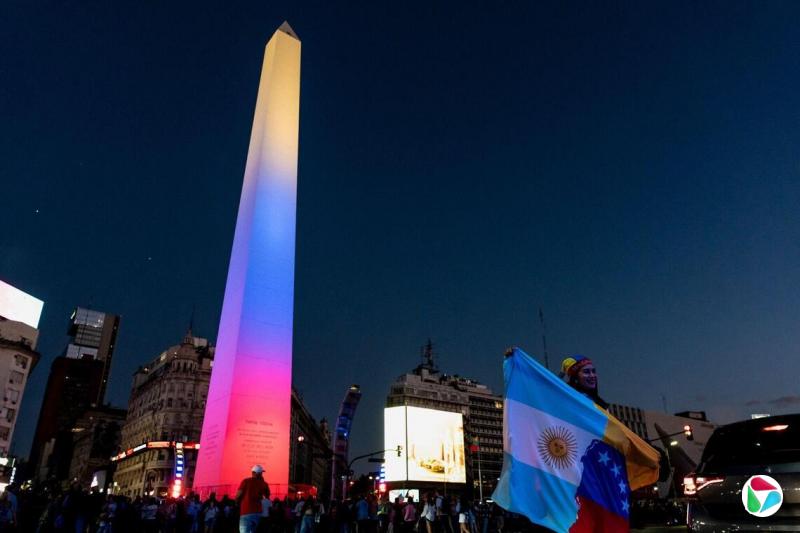 当天晚上,委内瑞拉人在布宜诺斯艾利斯市中心也举行了庆祝活动。