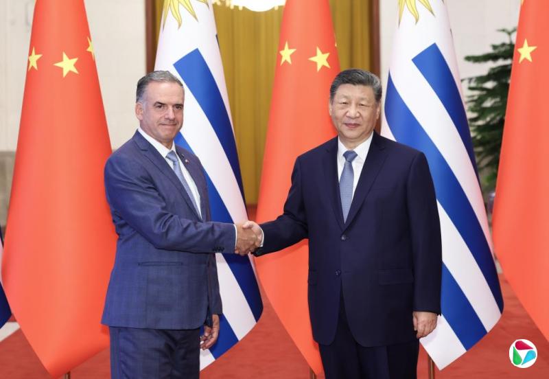中国元首指出,当今世界正处于百年未有之大变局,国际形势变乱交织,单边霸凌愈演愈烈,中国支持乌拉圭接任“77国集团和中国”轮值主席国,愿与乌拉圭加强全球南方团结协作,共同推进平等有序的世界多极化、普惠包容的经济全球化,携手并进、共谋发展,为构建人类命运共同体作出更大贡献。