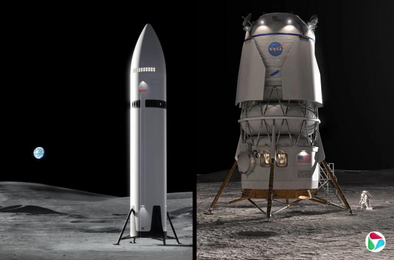 美国接下来一系列阿耳忒弥斯任务,就是希望把载人着陆器发射到月球南极,完成载人登陆。目前这个着陆器分别由马斯克的SpaceX和贝索斯的Blue Origin负责研发。