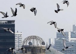 广岛和平纪念公园原爆遗址上空的鸽子图 路透/Toru Hanai
