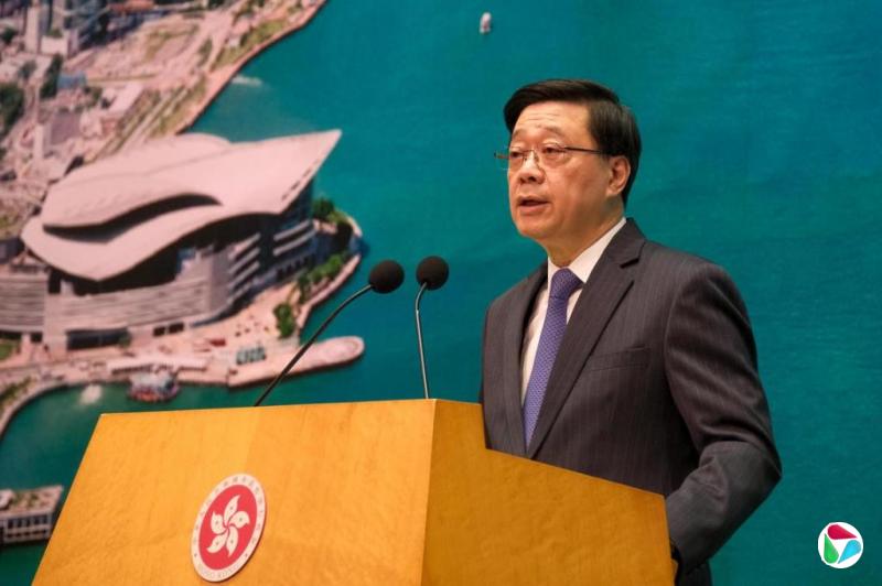 香港特首李家超率领代表团,参加星期三(9月3日)在北京举行的抗战胜利纪念大会、阅兵式和文艺晚会。图为他2月18日出席行政会议前的记者会。(中新社)