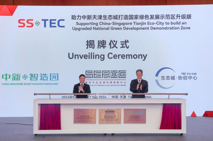 李智陞和天津市长张工也主持了中新天津生态城三个开发项目的揭牌仪式,其中包括占地600平方米的新加坡科技大学研究与创新中心,旨在推动可持续城市发展解决方案及打造绿色未来。