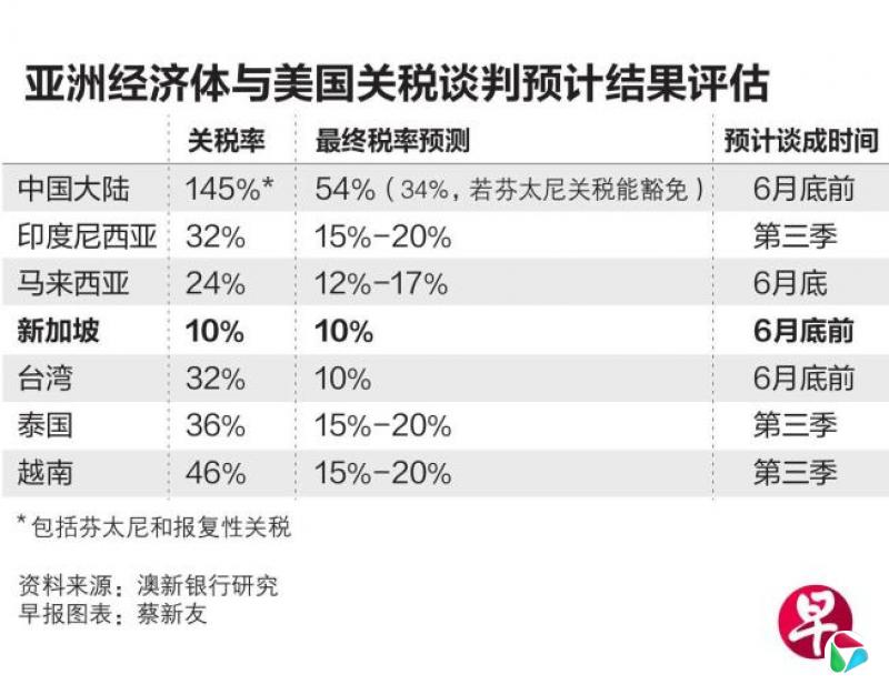 澳新银行也认为,印度尼西亚和泰国有望在今年第三季,把对等关税显著降低到15%至20%。