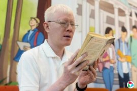 他说,自己生来患有白化症,头发和皮肤浅,眼睛对强光敏感,并有轻度散光。因此看书时喜欢拿近些,但视力仍正常。“阅读时,我喜欢字体足够大、字母间距宽一些。”