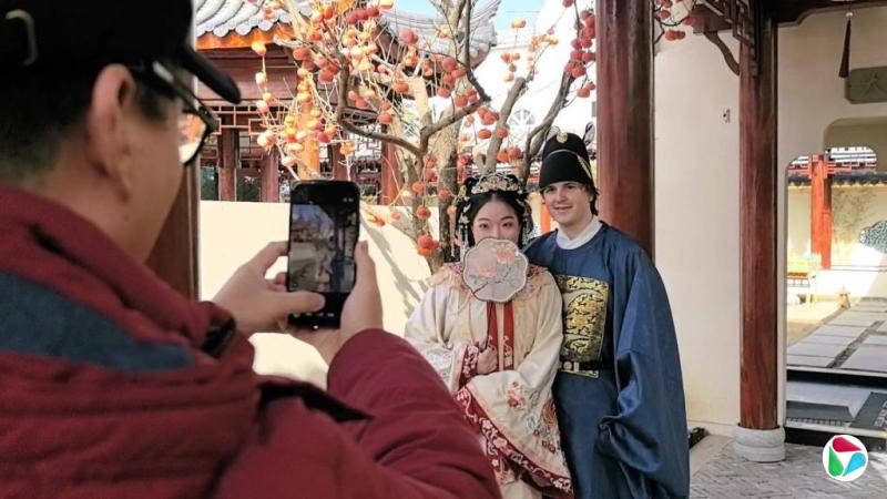 记者采访当天,不仅遇到不少像马女士一样愿意为“情绪价值”买单、带孩子前来体验的家长,也看到不少热衷中国风文化的年轻人。26岁南京女生小周便是其中之一,喜爱古装剧的她到北京旅游时带荷兰籍男友蒂姆体验宴外宴,两人用餐前换上古装拍照打卡,仪式感十足。