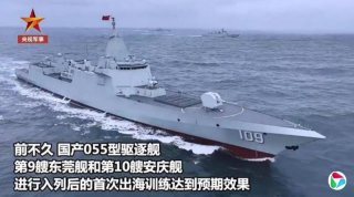 央视军事星期三(11日)公开东莞舰和安庆舰首次出海训练画面,称训练达到预期效果。官媒也以“十全十美”评价10艘055型在六年内服役,称这是海军深蓝征程上的重要支点。